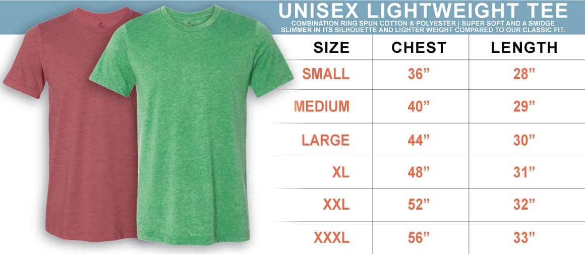 Printed on a 65/35 cotton blend in coastal New England. Heathered fabric delivers a fashionable look and lighter feel and Teddy tees are always tagless.