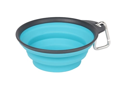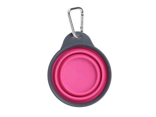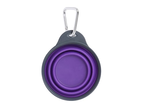 Got water! This is a must have for active pets on the go while traveling, hiking or just on a walk. Collapsible cup with carabiner is the perfect solution for thirsty or hungry dogs. Clip easily latches onto belt loops, leashes, backpacks, strollers or purses. Collapses to less than 0.5 inches thick.