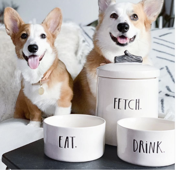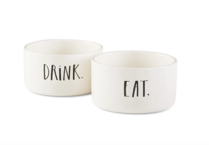 Rae Dunn Stem Print Eat + Drink Pet Bowls - Set of 2 (2 sizes)