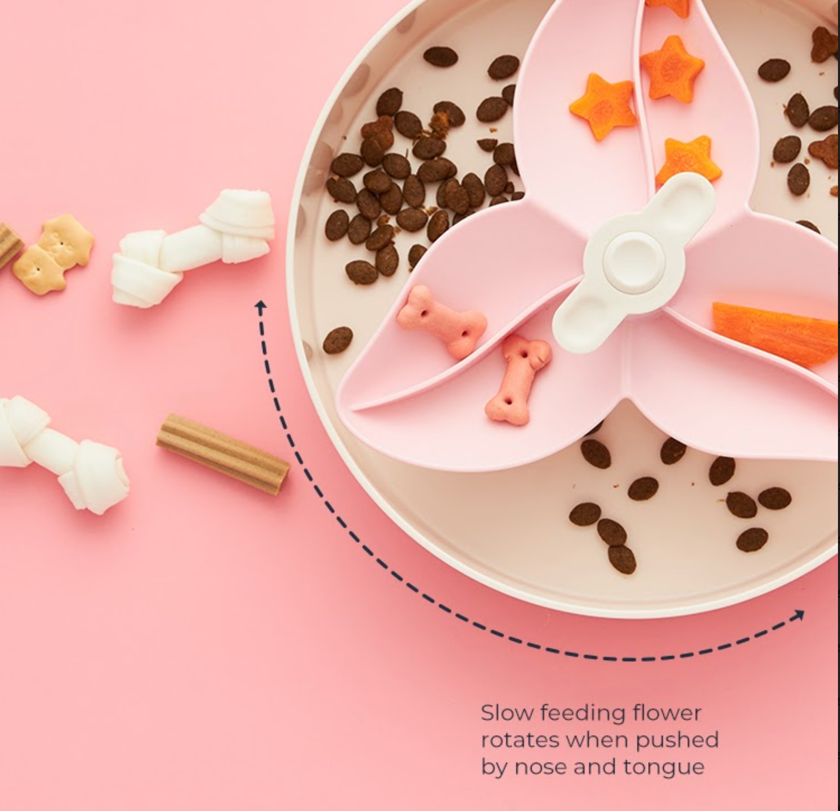- SLOW: The Bougainvillea SPIN Bowl provides a fun challenge for dogs and cats while also naturally slowing down consumption. This slow-feeder functionality significantly reduces the risk of choking, bloat, or other potential hazards from fast eating.