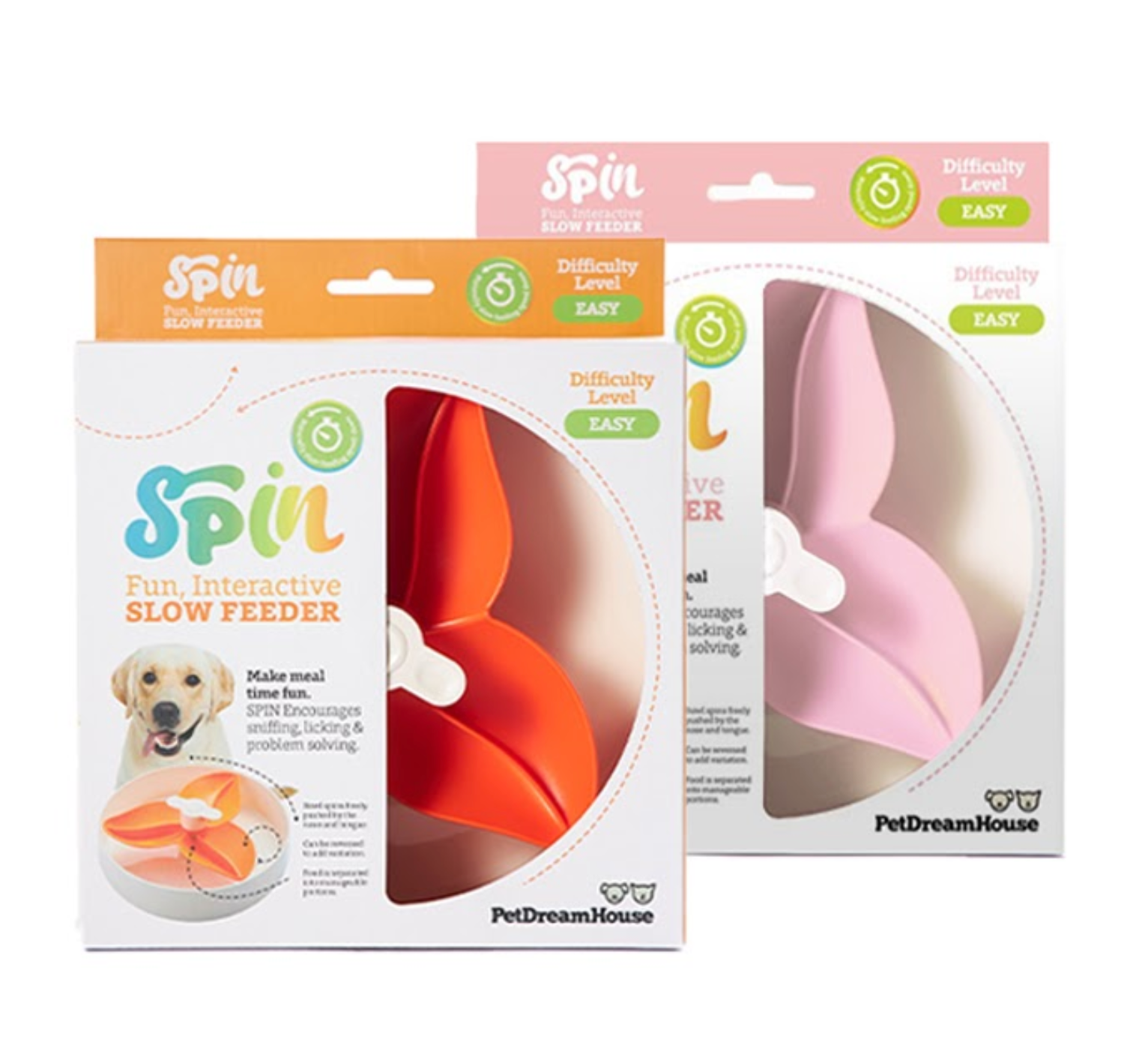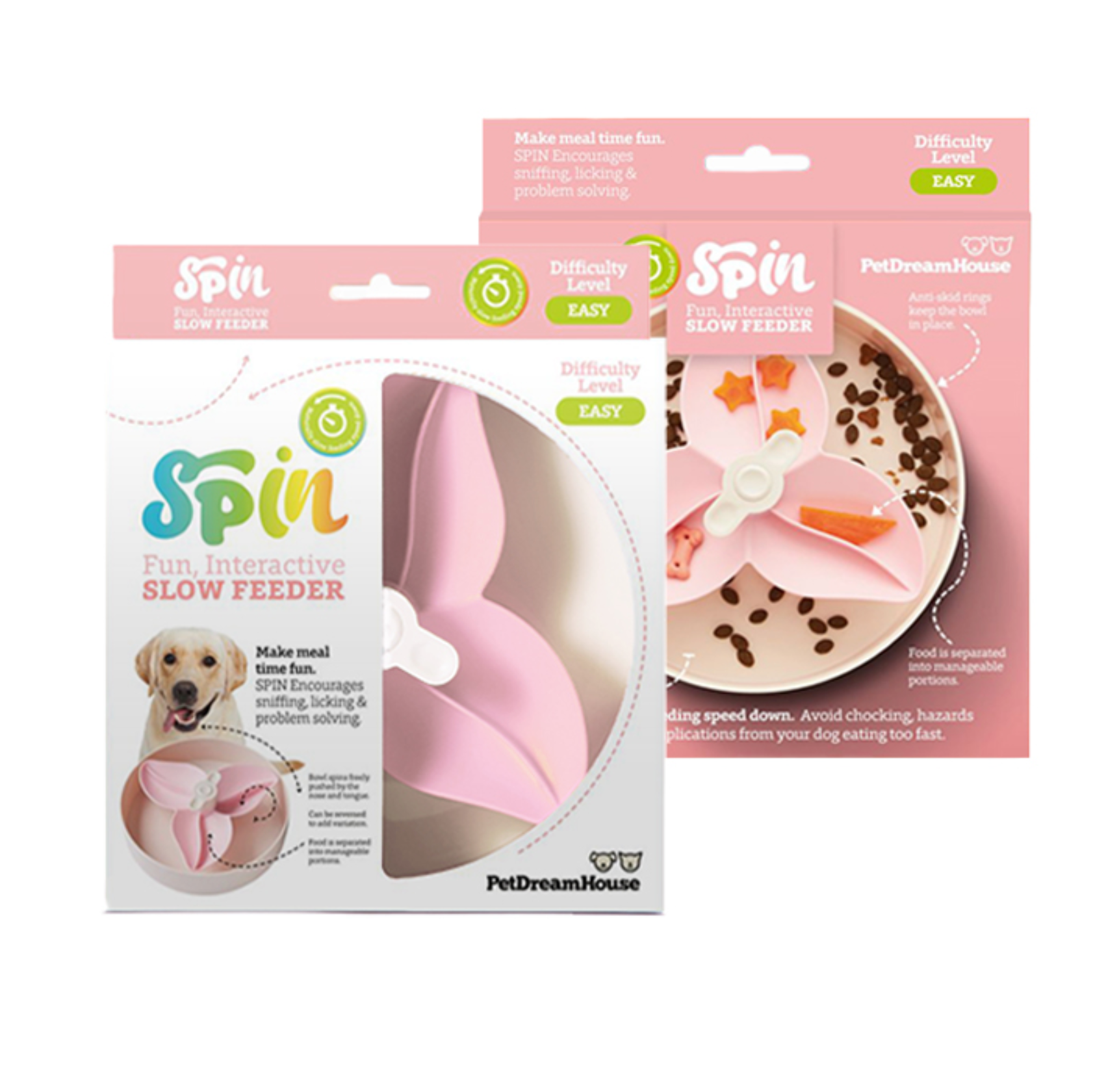 The Bougainvillea SPIN bowls, level, EASY, by PetDreamHouse are a dynamic slow-feed pet bowl that turns mealtime for your dog or cat into fun and interactive feeding.