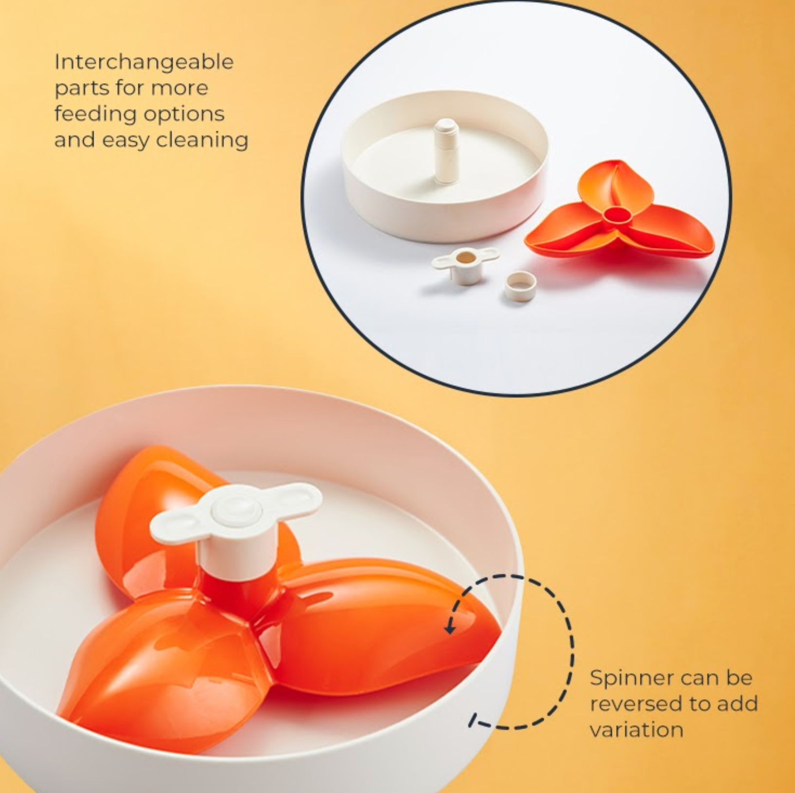 - INTERACTIVE: Unlike stationary slow-feeders, pets actively engage with the bowl’s moving and interchangeable components providing a moderately different feeding experience at each meal. These game-like feeders keep dogs/cats entertained during meals while also exercising their minds.