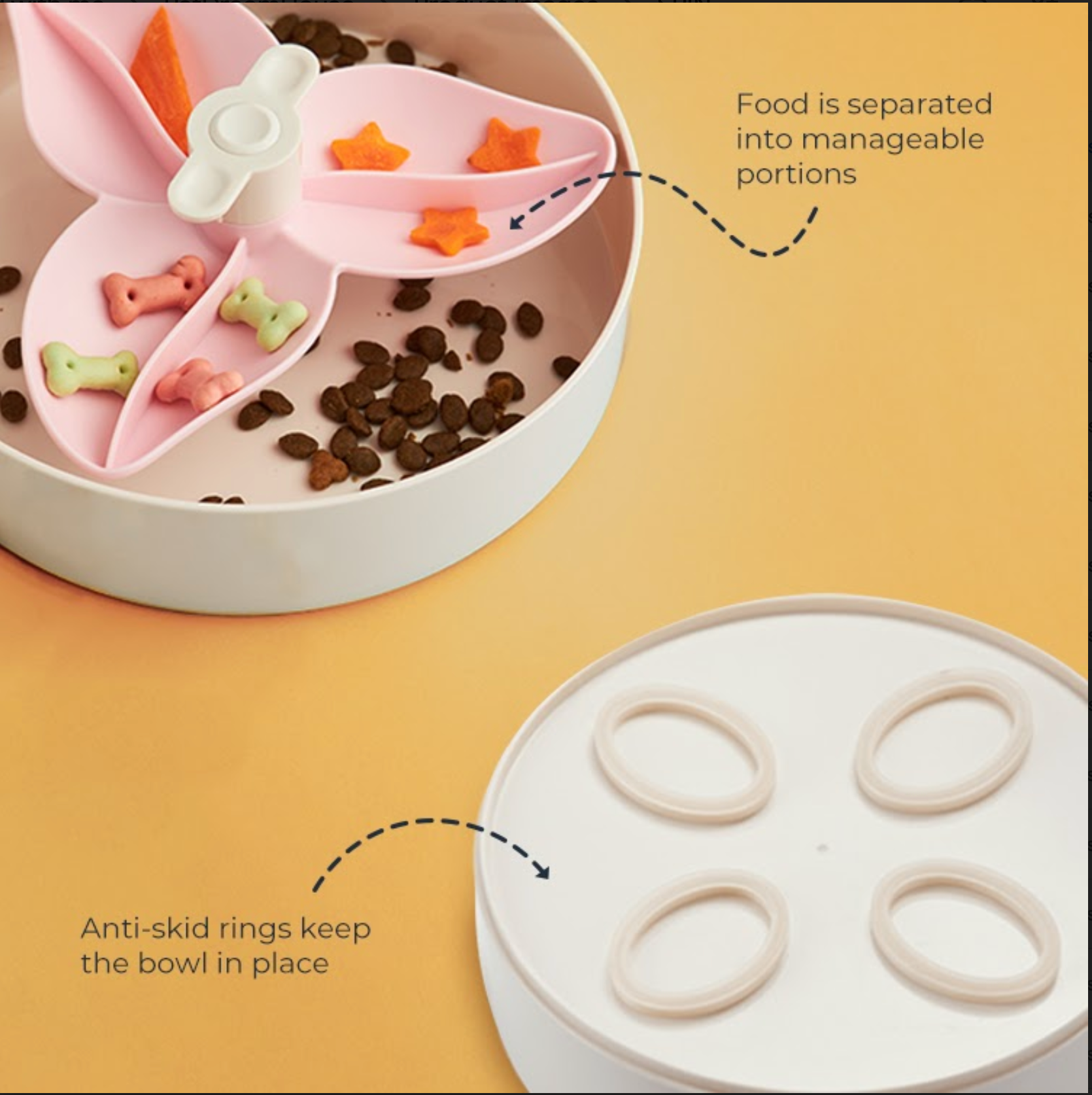 Each bowl has four large anti-skid rings to provide high stability.