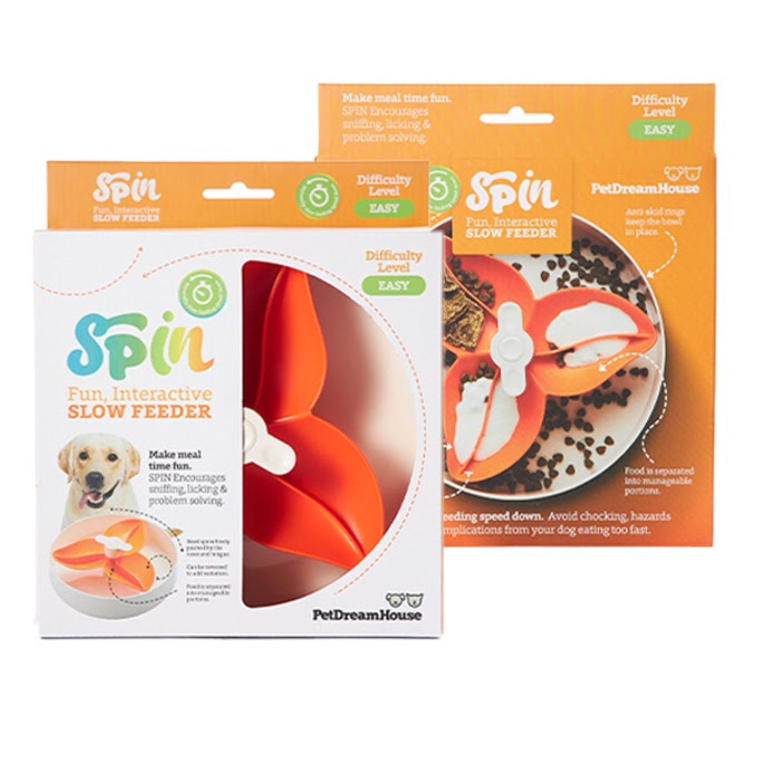 SPIN bowls encourage sniffing, licking, and problem-solving during meals, which naturally slow eating and prevent choking, bloating, and excessively fast eating.
