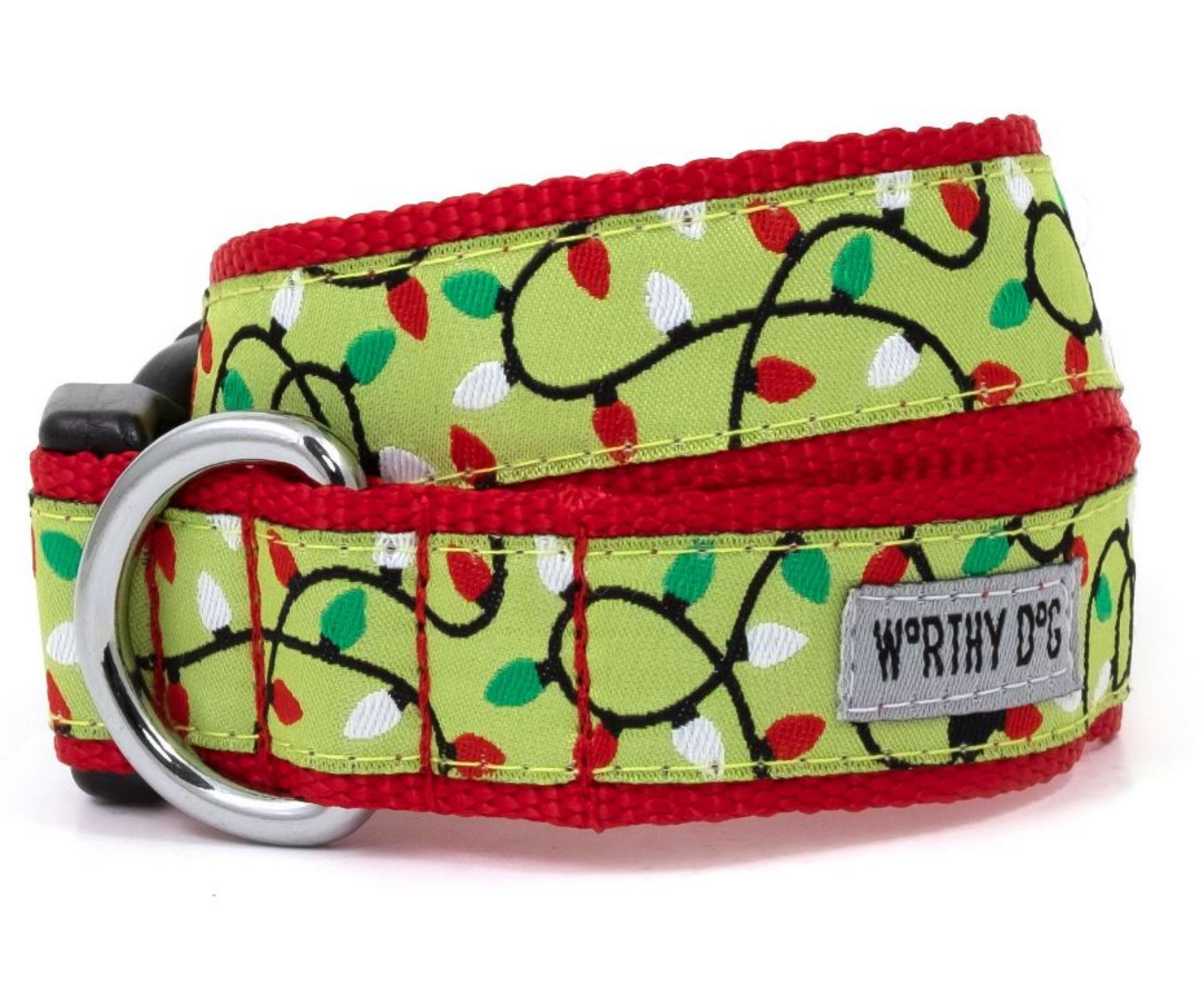 The Worthy Dog adjustable collar focuses on both durability and style, featuring woven ribbon sewn onto comfortable and durable nylon webbing with a snap clasp and nickel-plated D-ring