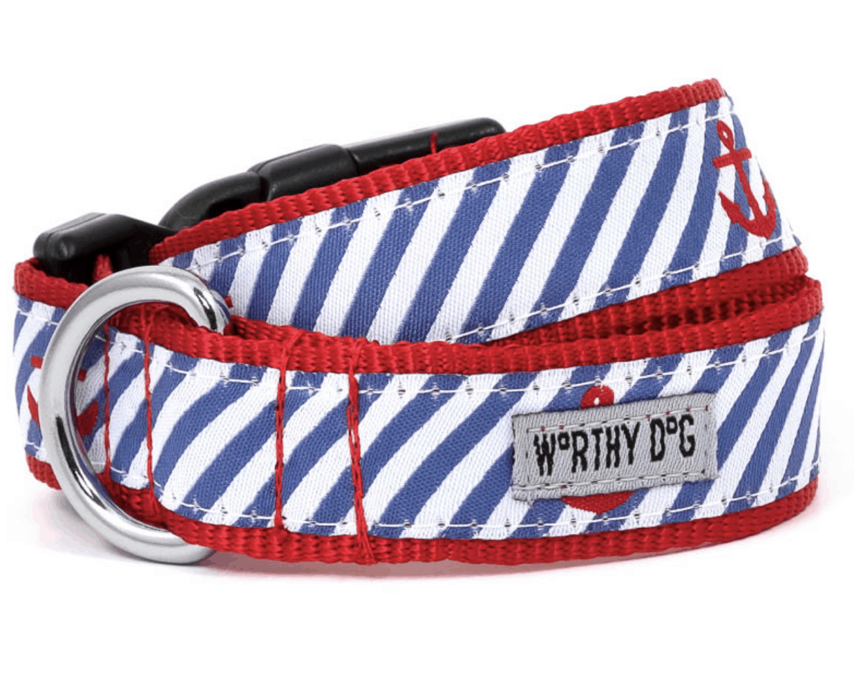 Navy Stripe Anchors collars by the Worthy Dog