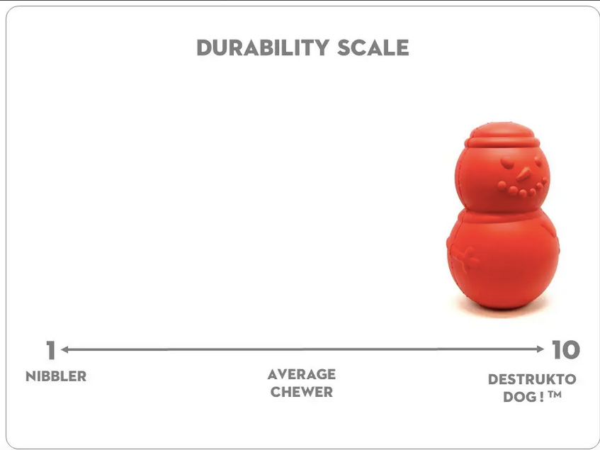 DURABLE CHEW TOY: The Snowman Toy is designed to withstand the abuse of most "power chewer" dogs.