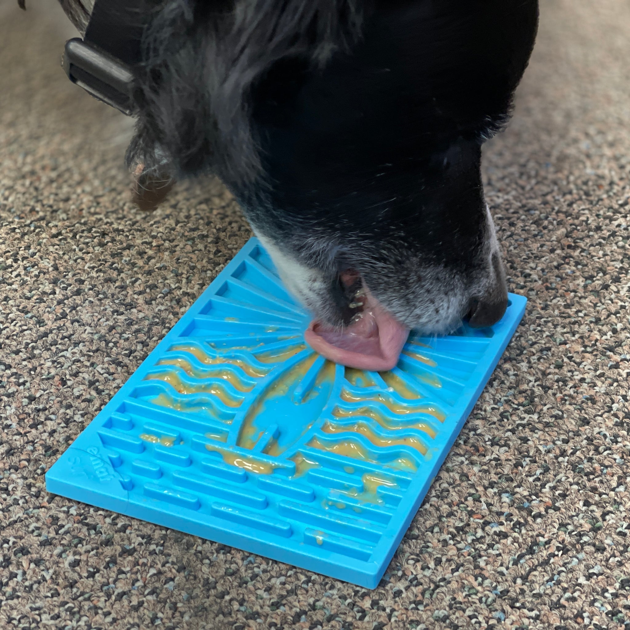 ENRICHMENT: Licking soothes and calms your dog. Spread your pet’s favorite soft treat across the surface of the emat, ensuring the treat is pushed down into the surface of the mat.
