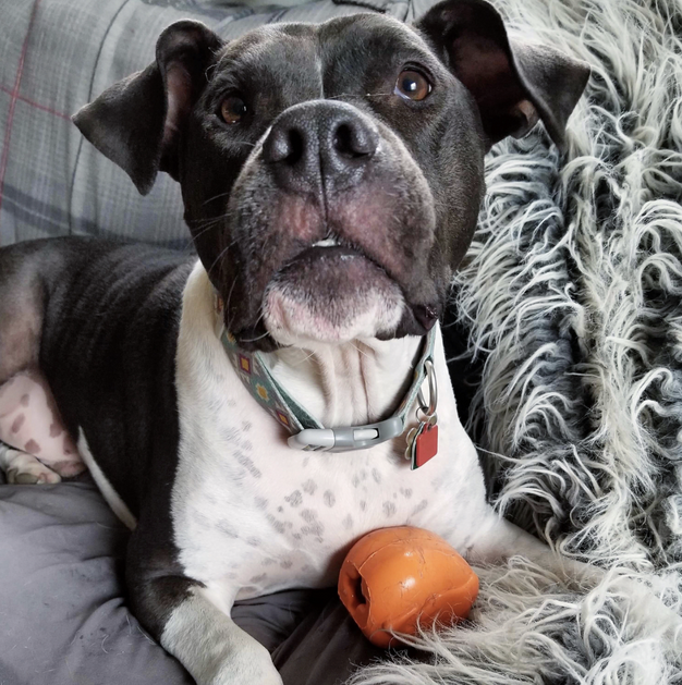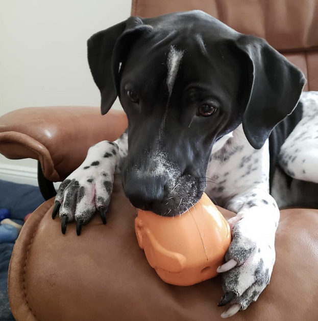 Does your dog gobble? His food, that is! This chew toy and treat dispenser can help with that! Fill with kibble or treats and offer. Or for a longer lasting meal, mix wet and dry food, stuff and freeze for several hours before serving.