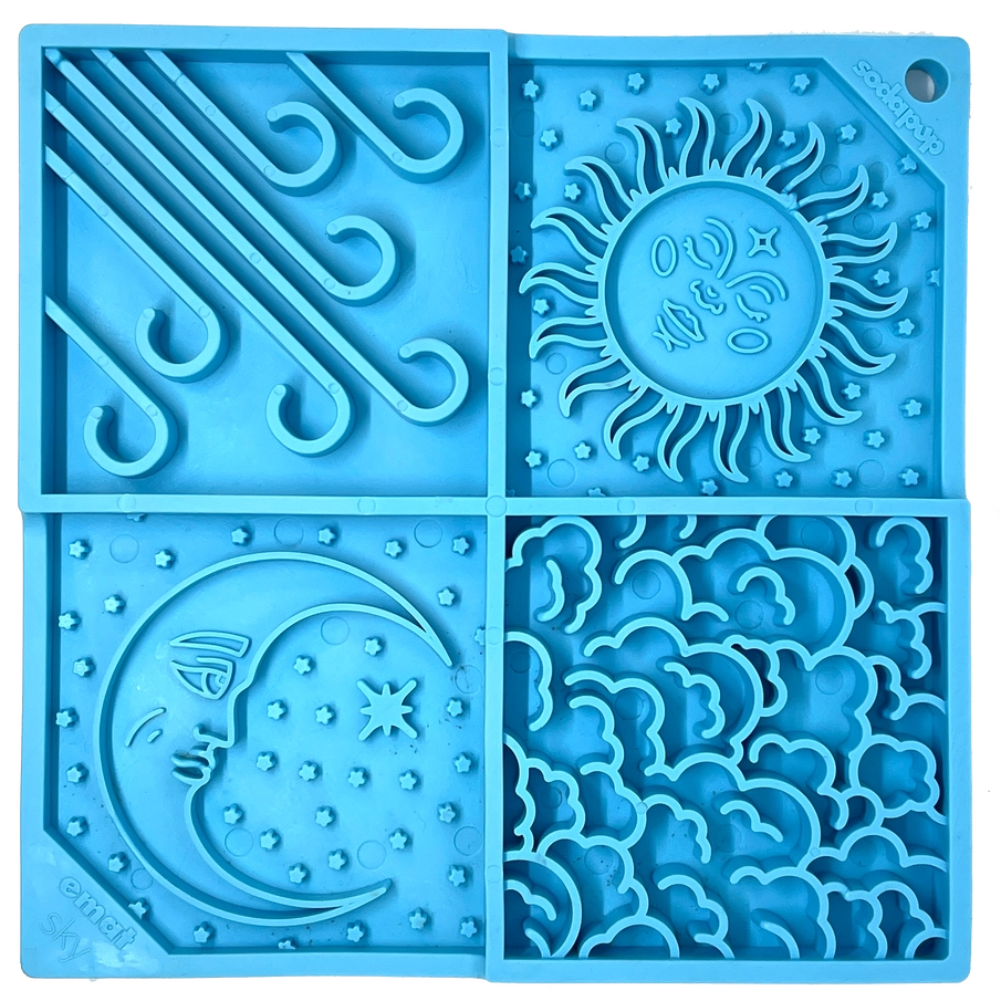 The Sky Design eMat Enrichment Lick Mat lets your pup lick away at the sun, moon, wind, and clouds. This mat features two heights, adding to the enrichment challenge. The sky is the limit with your enrichment routine with this creative and inspiring mat bringing added fun and challenge to your furry friend's daily routine. Woof!