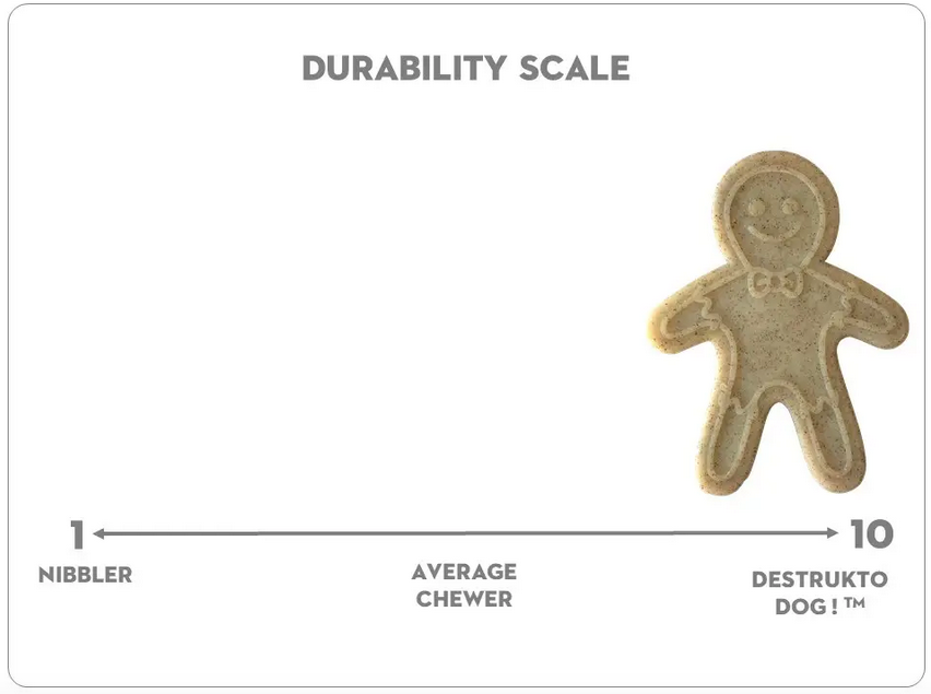 POWER CHEWERS: This ultra-durable nylon toy in the shape of a gingerbread man is designed and built to withstand even the most aggressive chewers. This toy helps keep your dog entertained and solves problem chewing behaviors. Made from an innovative nylon and wood composite material.
