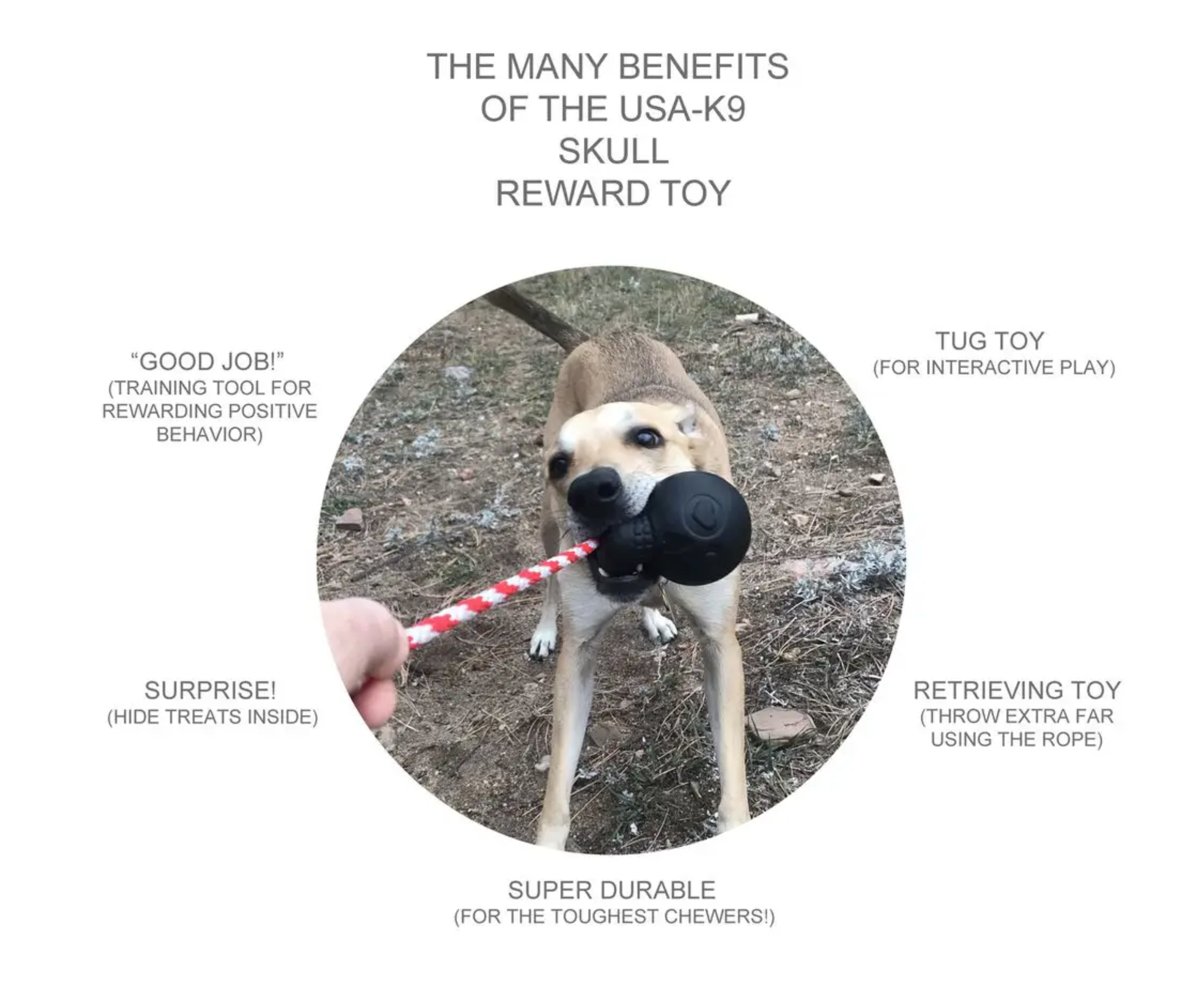 REWARD TOY: With a durable rope attached, the skull toy becomes an ideal reward toy/prey toy for your working K9.
