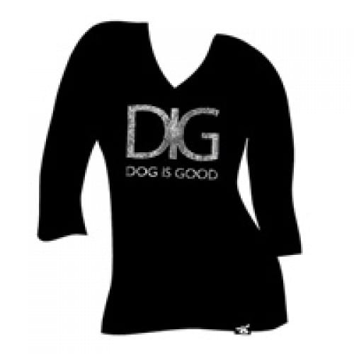 Dog is Good- Women's Regular 3/4 Length Sleeve, Black with "DIG" in Rhinestone