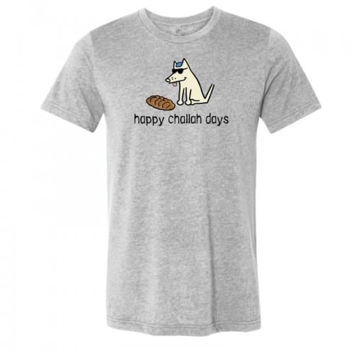 Happy Challah Days Lightweight Tee (unisex) in Athletic Gray. Printed on a 65/35 cotton blend in coastal New England.