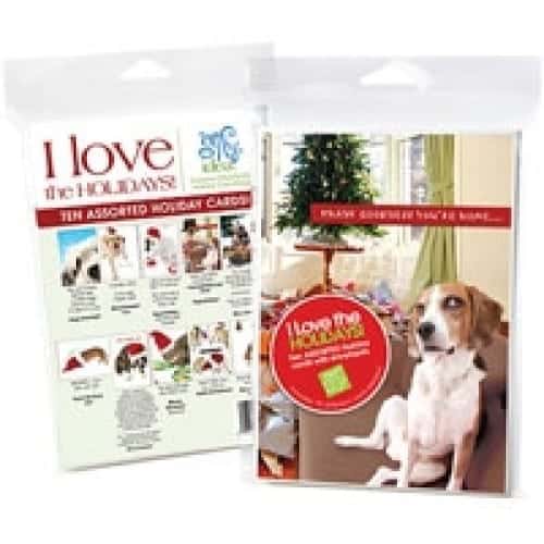 Gifty Idea Assorted Holiday Card Pack! Pre-packaged, 10 assorted holiday cards to a pack. Our new assortment contains the following breeds: Jack Russell, Pug, Yellow Lab, Beagle, Dachshund, Chihuahua, Cavalier King Charles, Boston Terrier, English Sheep Dog and ONE FAT CAT!