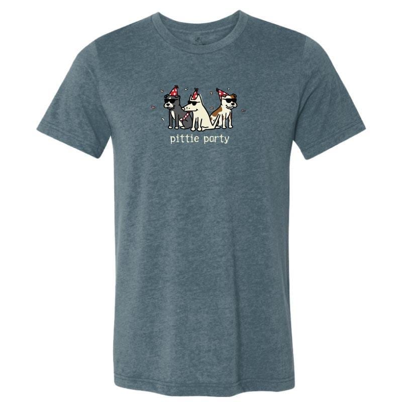 Pittie Party Lightweight Tee in Heather Slate - Teddy the Dog **Special Edition**