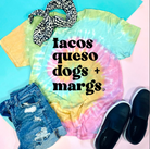 Tacos Queso Dogs Margs Tie Dye Tee