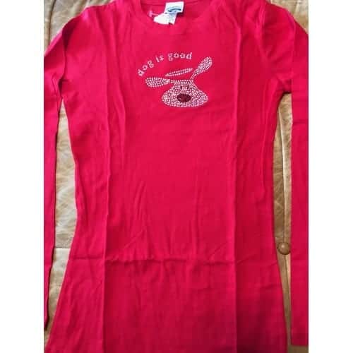 Women's Boutique Jr. Fitted Lipstick Red V-neck Long sleeve Dog is Love Tee (Dog is Good)
