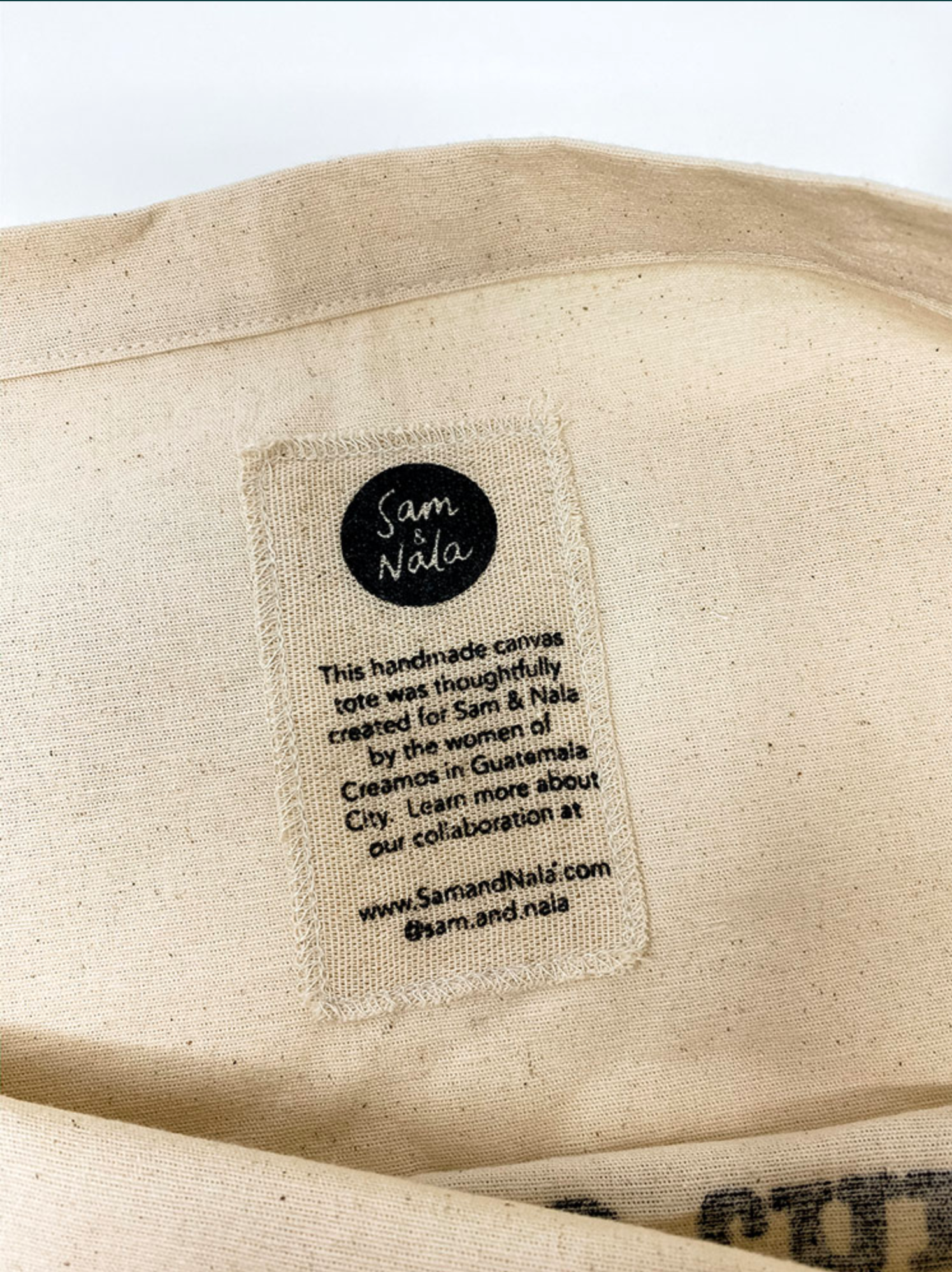 These handmade canvas totes were thoughtfully created by the women of Creamos in Guatemala City, using premium upcycled denim from the New Denim Project.