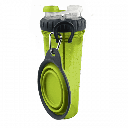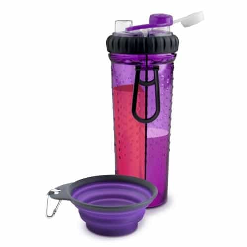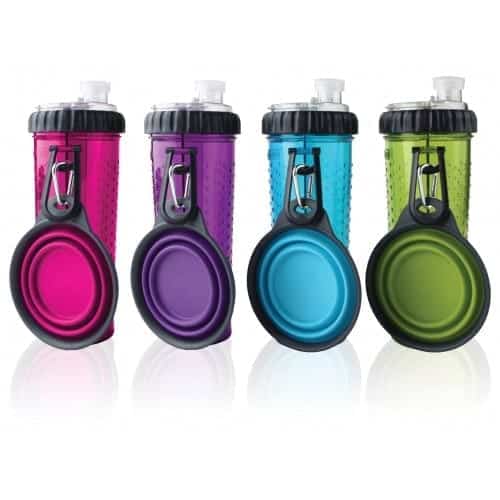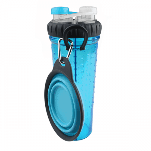 Two drinks. One bottle.Introducing the first water bottle designed for both you and your active pet! Carry two drinks at the same time – a sports or energy drink for you, plus water for your dog.