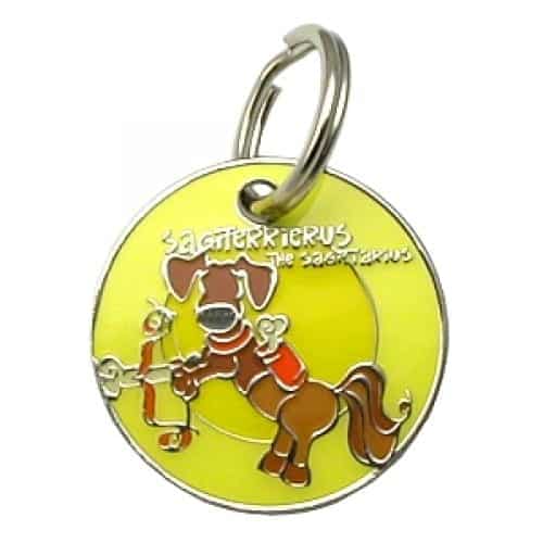 DogOscopes collar charms and pet ID tags feature colorful, canine representations of the twelve signs of the zodiac.