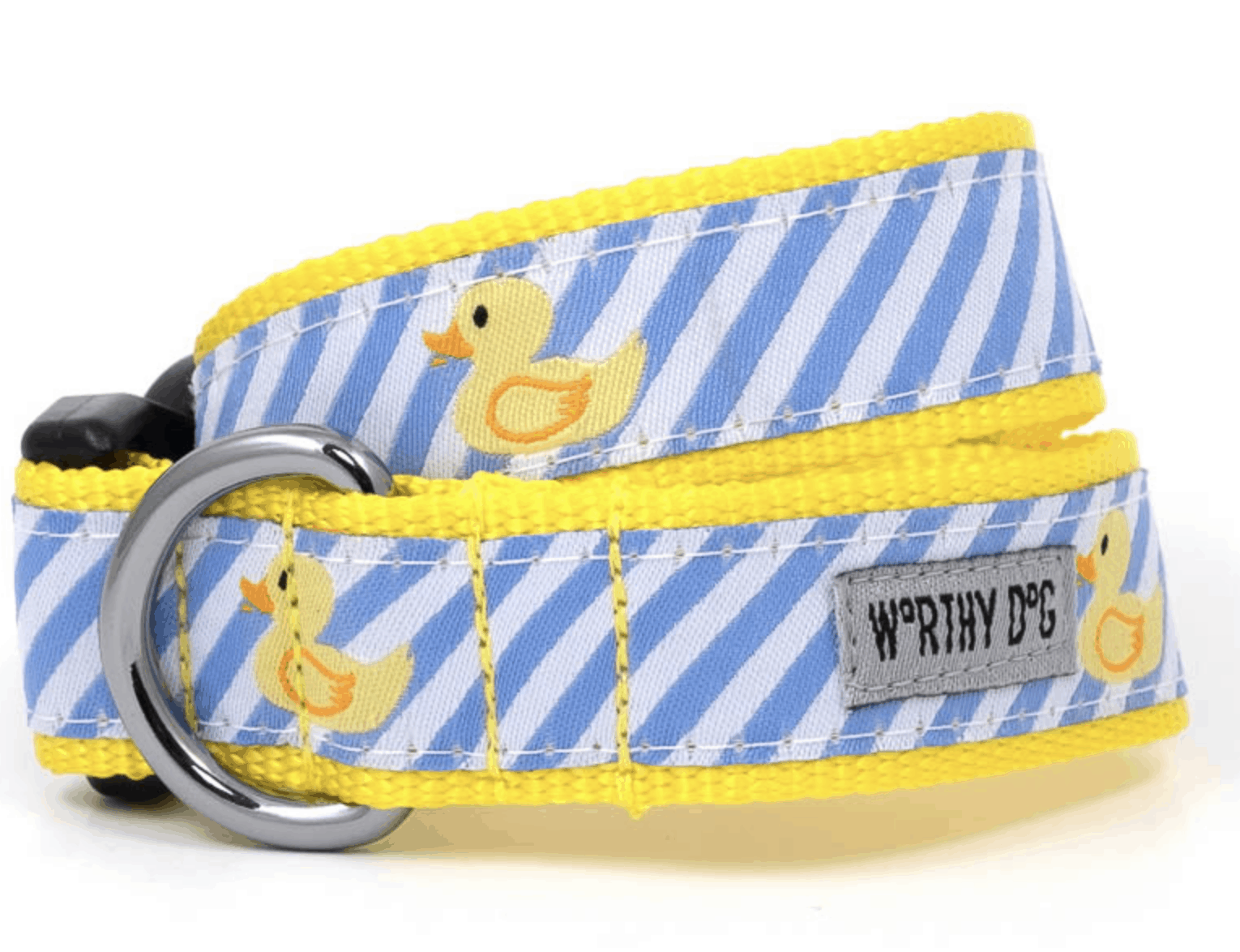 Light Blue Stripe Rubber Duck collars by the Worthy Dog