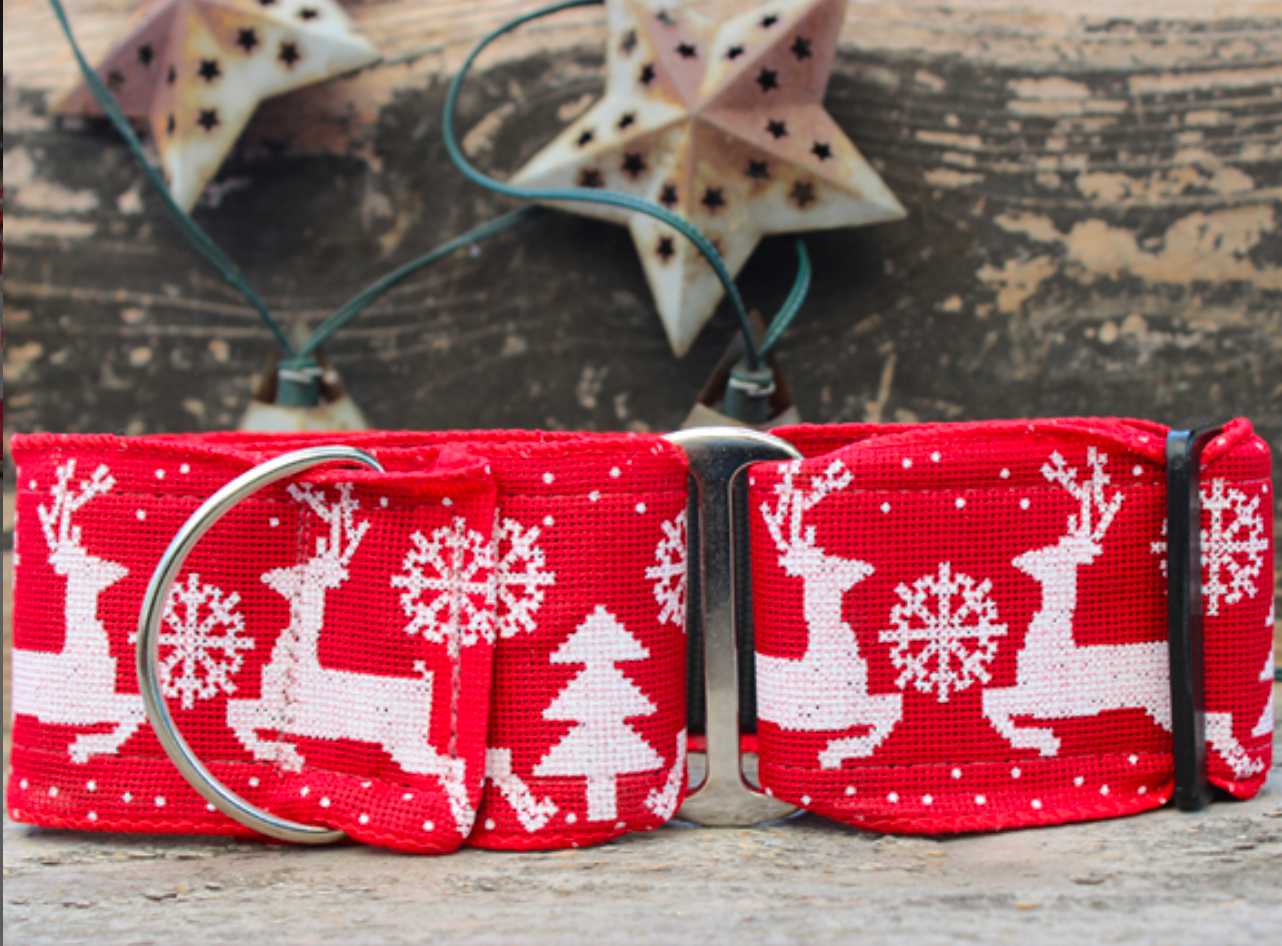 Reindeer Crossing Extra Wide Martingale Dog Collar by Diva-Dog