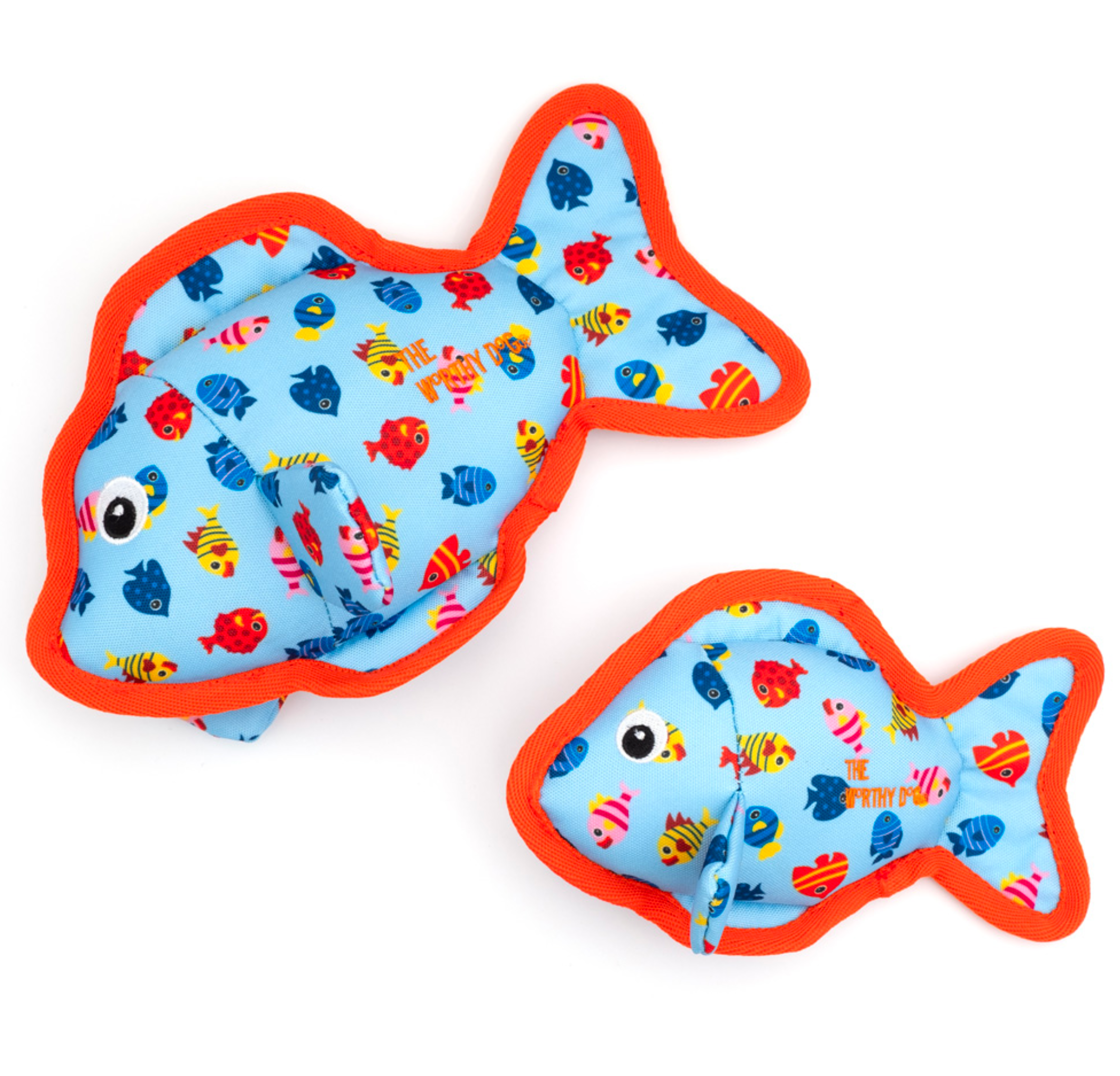 Featuring a tough and rugged fabric outer layer with a strong mesh fused lining and stuffed with safe, non-toxic fiber fill, each toy includes multiple squeakers to keep pups engaged.