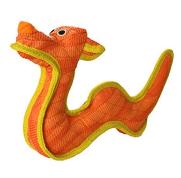 Great for interactive play with one or multiple dogs. Best for dogs who like to whip their toys and play tug for hours. Floats in water, and it’s machine washable, (air dry).