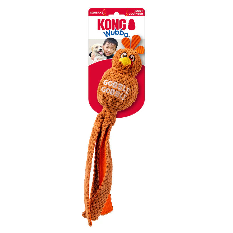 Get your pup in the holiday spirit with the Kong Thanksgiving Wubba Turkey Gobble Squeaky Dog Toy!