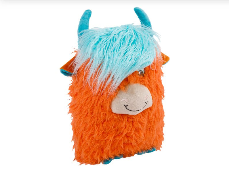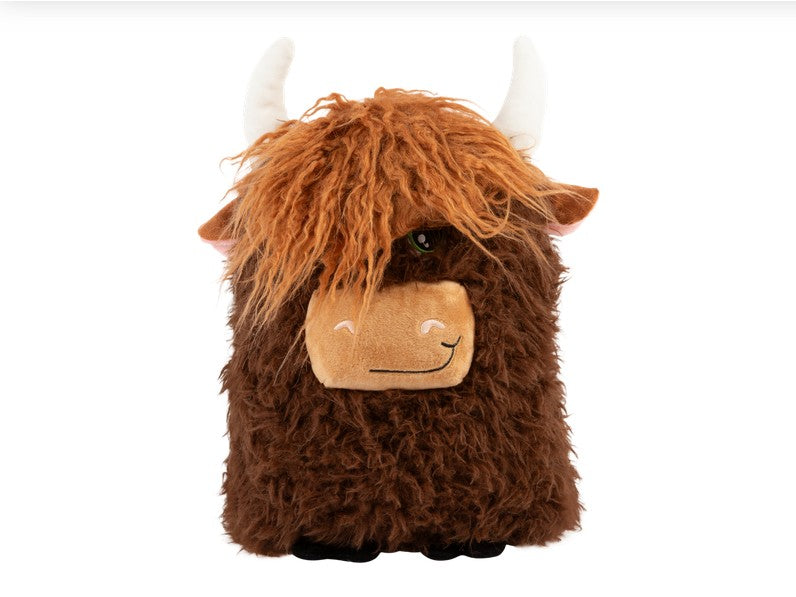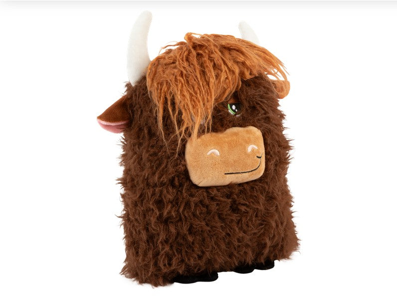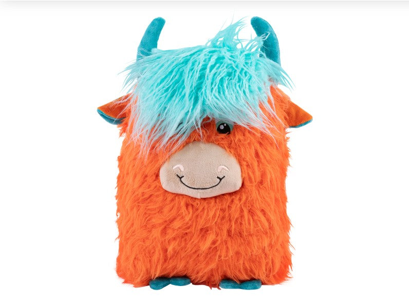 KONG Comfort Jumbo Highland Cow gives cool-cow vibes with its wild shaggy fur and floppy hair swoop.