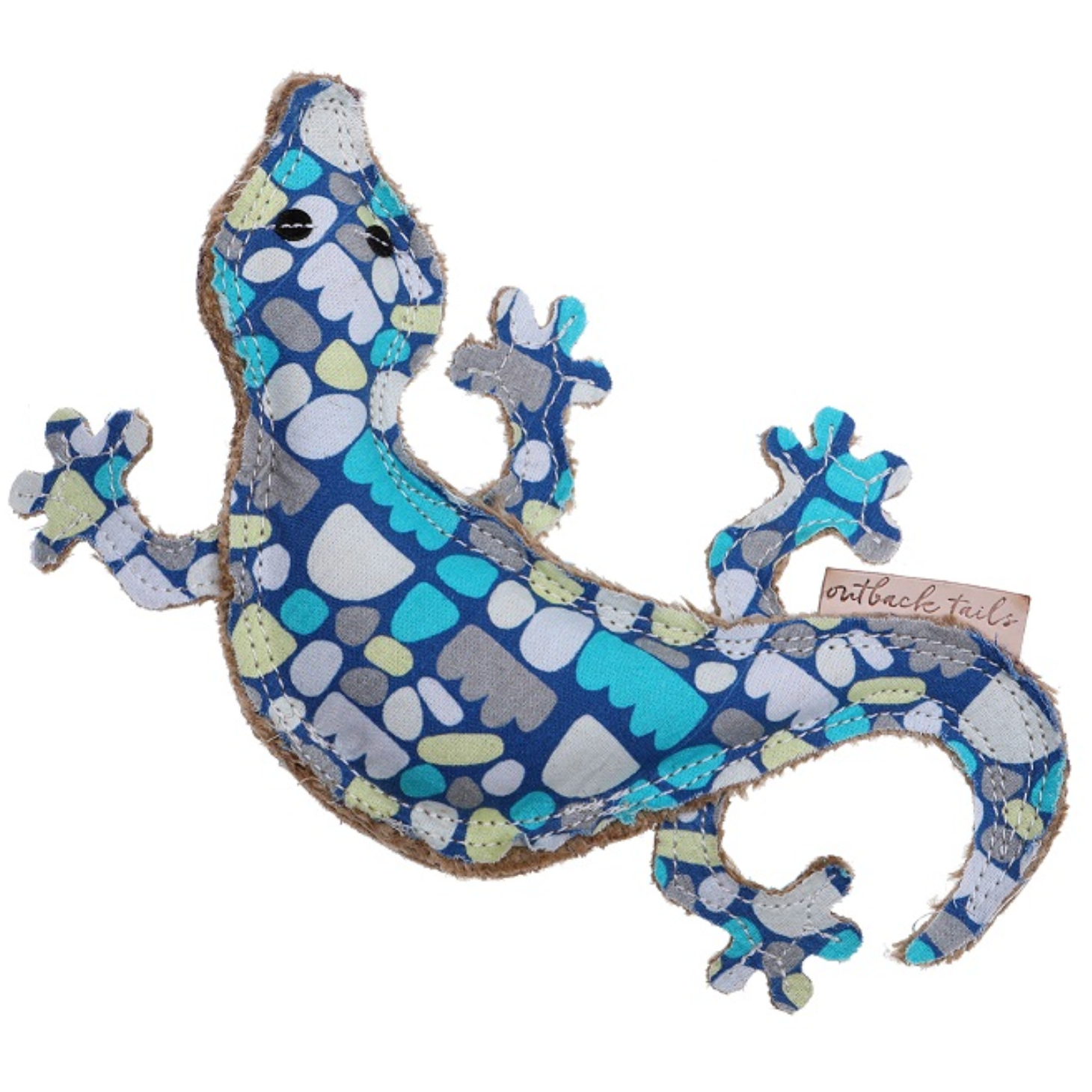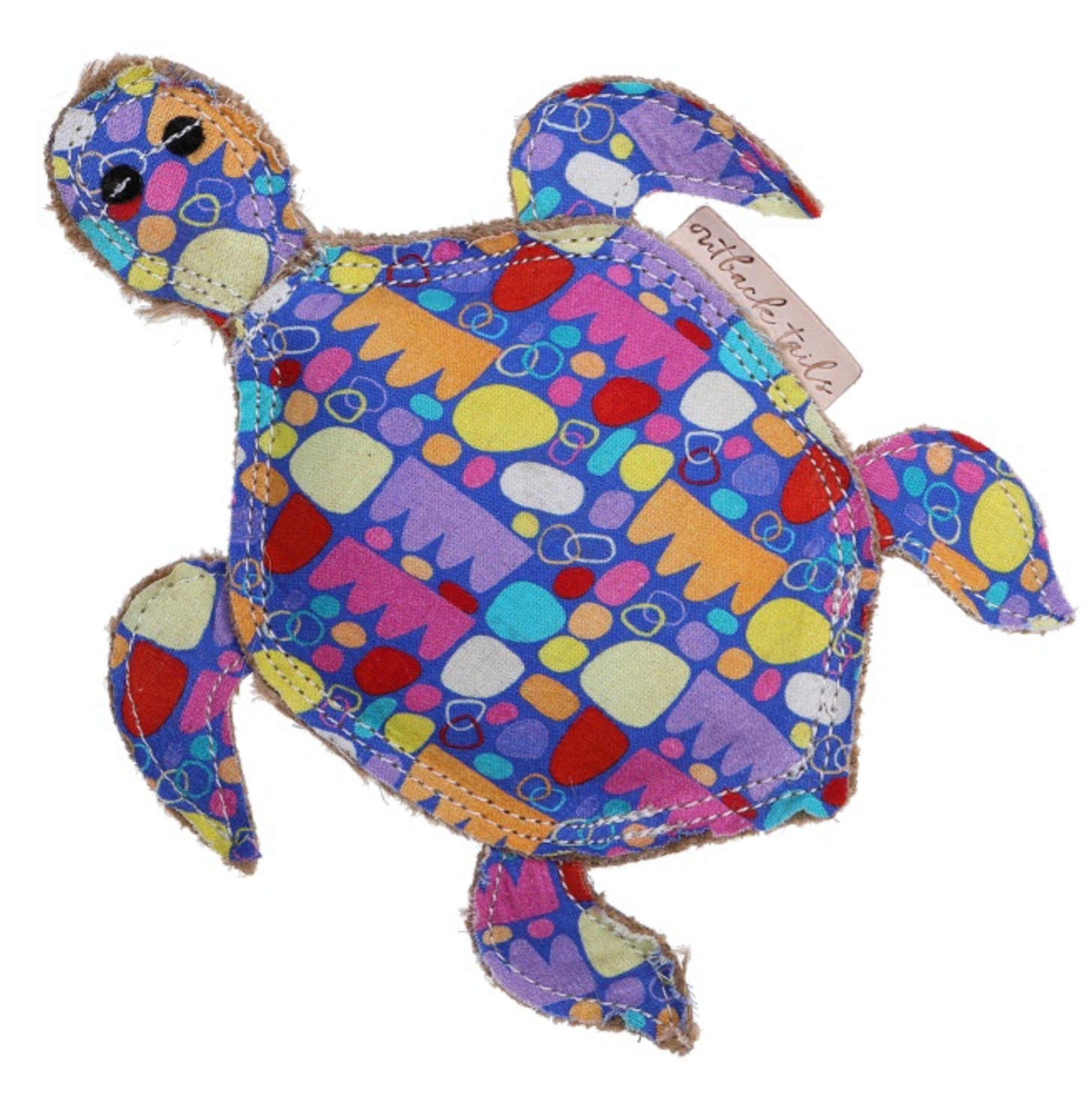 Printed with the stunning artwork 'Puli Puli Rocks' by Australian Indigenous artist Keturah Zimran, these bright and colorful outback animal toys are stuffed with natural, eco-friendly jute fiber, double stitched for strength and include a hidden squeaker.