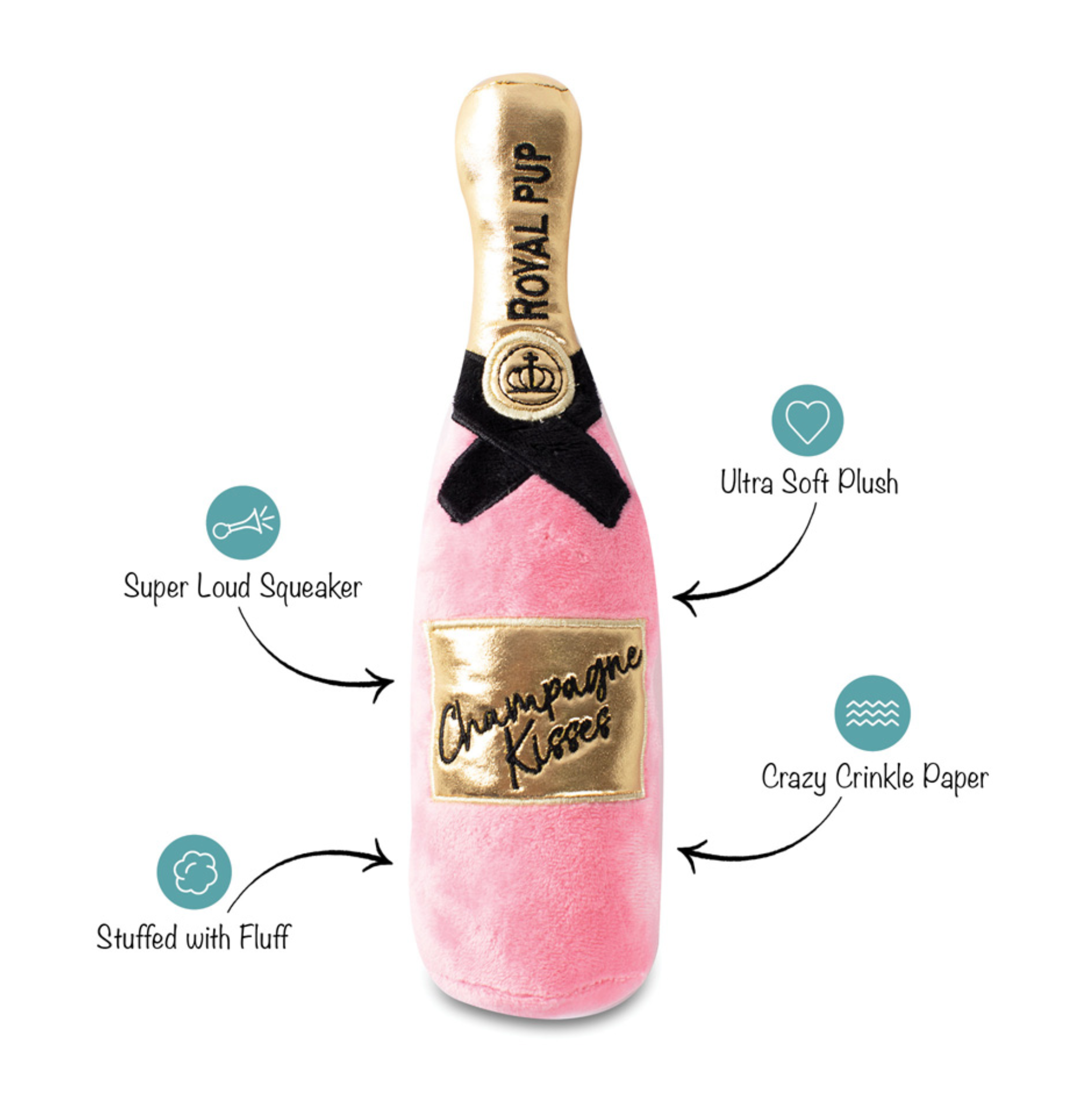 Champagne Kisses Plush Dog Toy for Valentine’s Day
