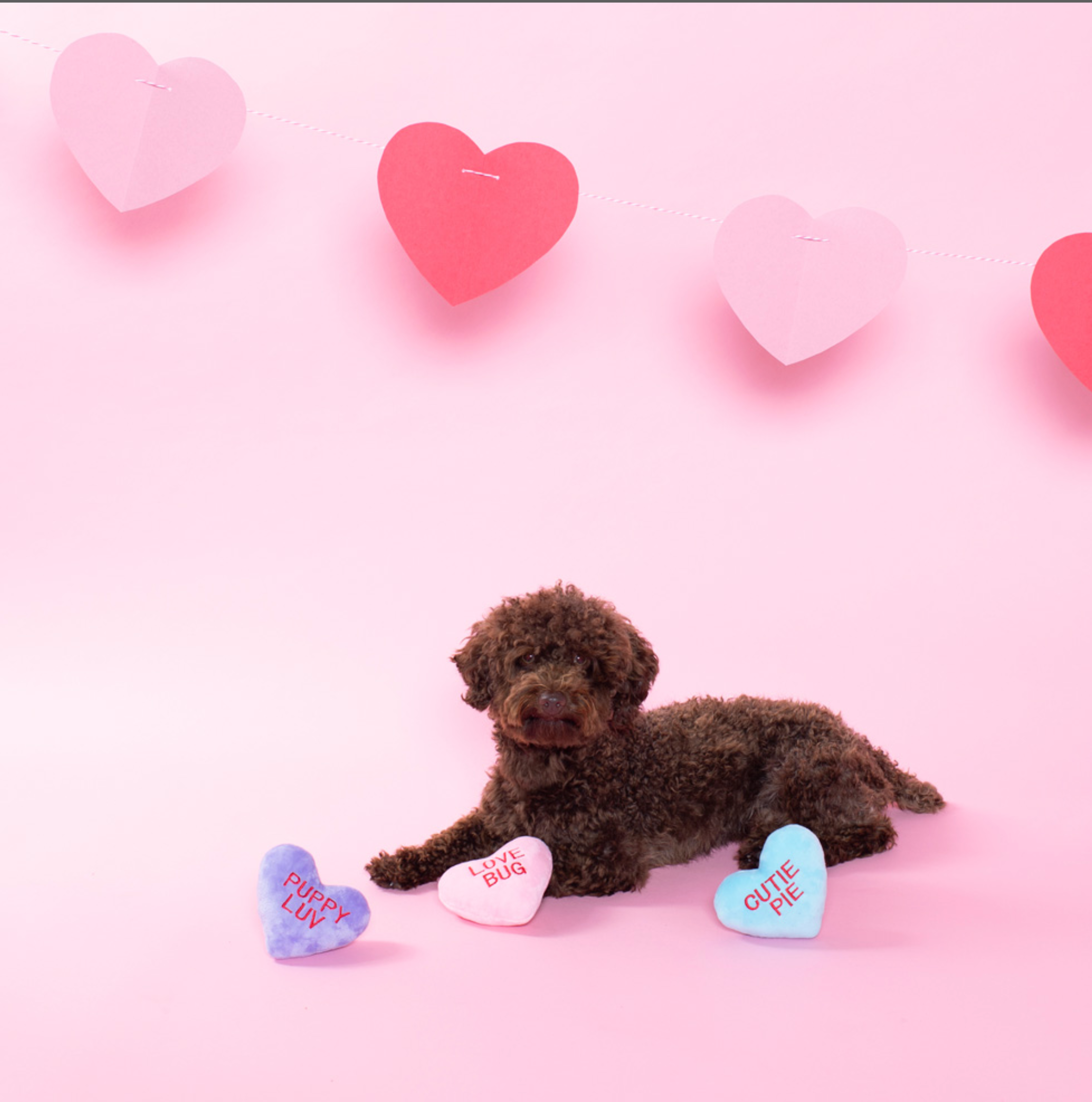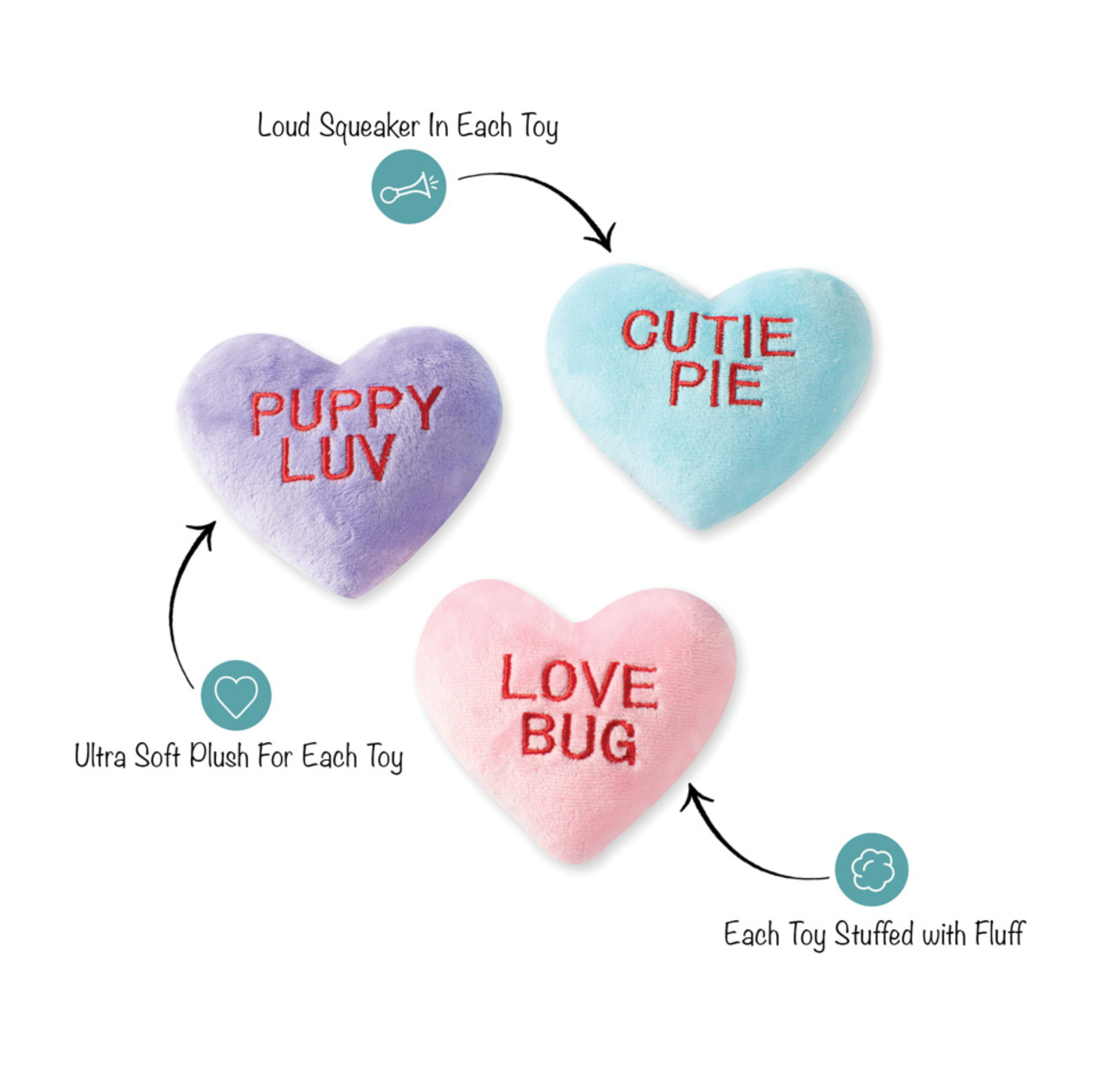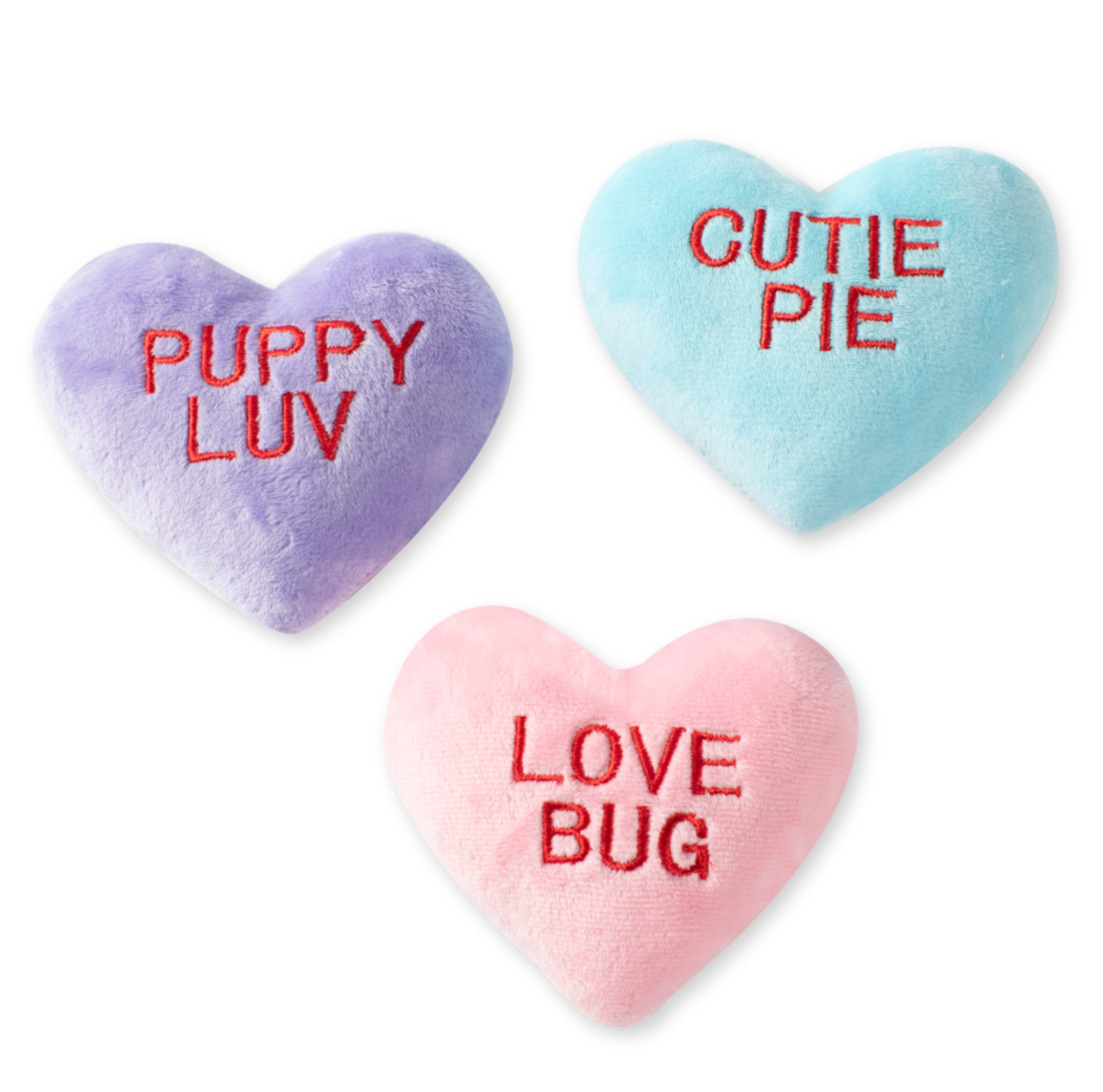 Conversation Hearts Plush Mini Dog Toys (set of 3) for Valentine’s Day