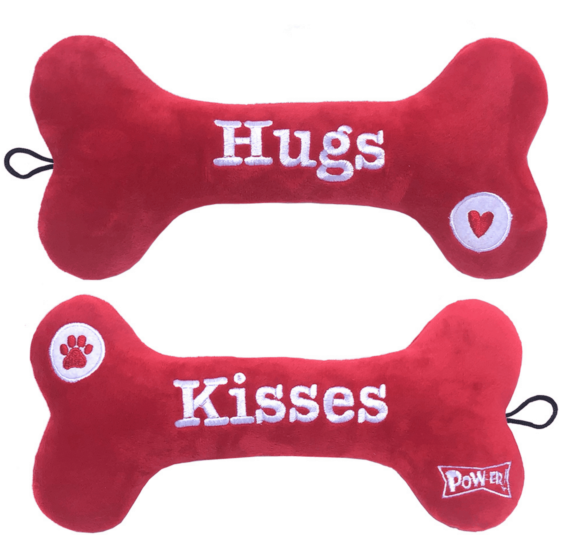 Hugs & Kisses Bone (embroidered two sides) dog toy by Lulubelles Power Plush (2 sizes)