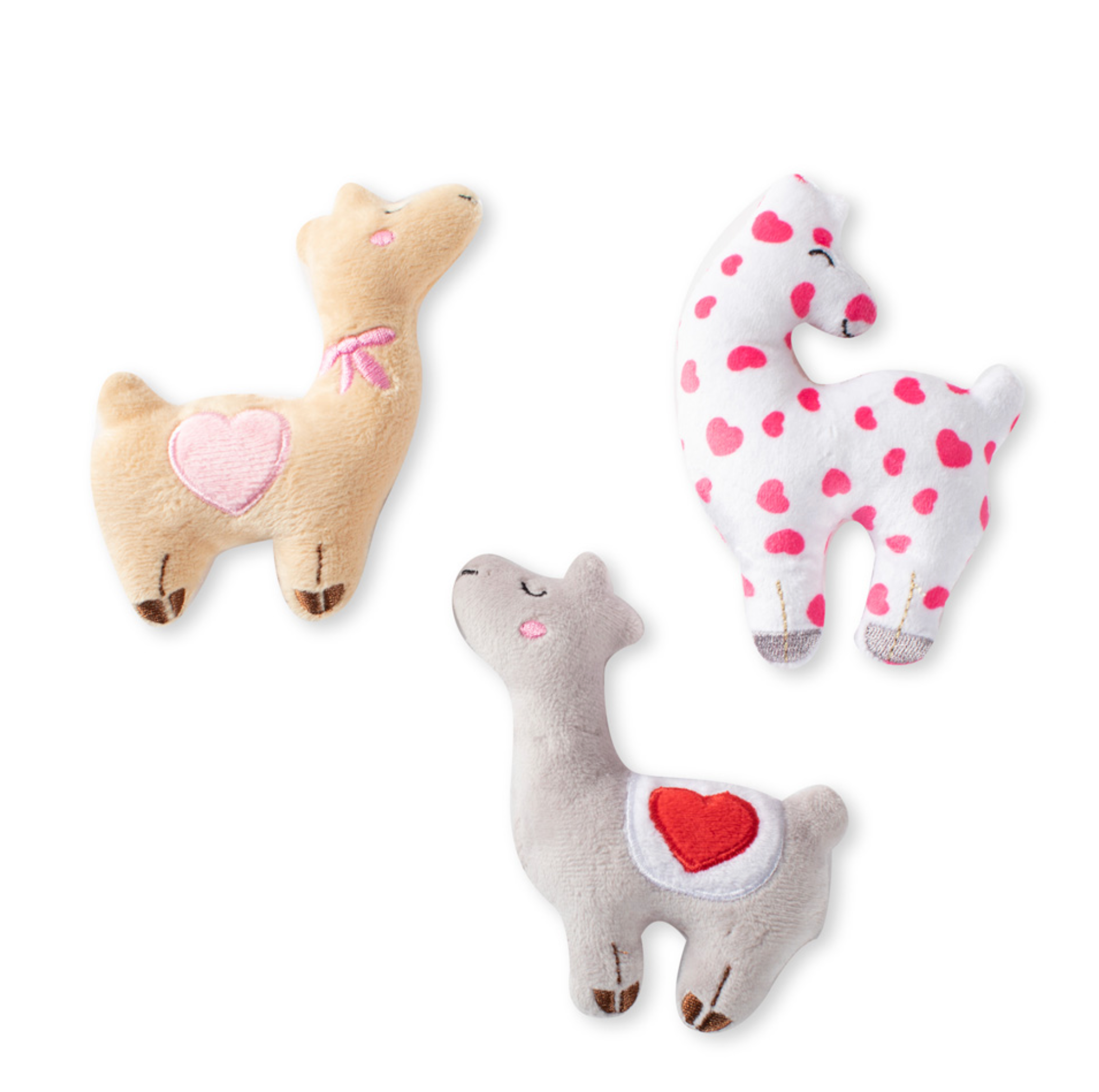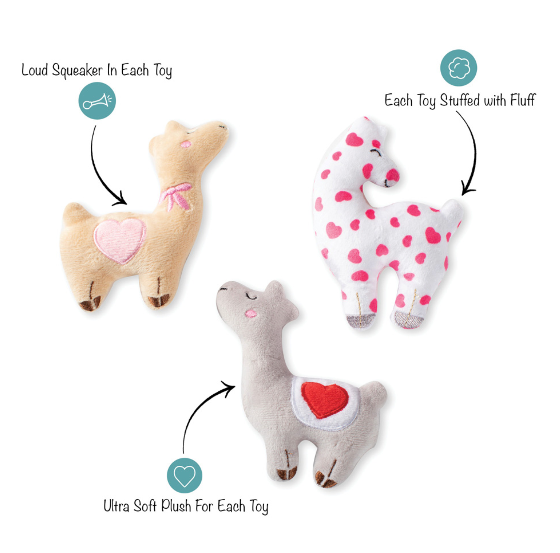 Love Llamas Plush Mini Dog Toys (set of 3) for Valentine’s Day