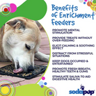 BENEFITS: Calm your dog through licking. Entertain your pet. Avoid overfeeding. Promotes fresh breath, healthy teeth and gums. Stimulates saliva to aid digestive health.