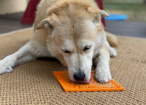 ENRICHMENT: Licking soothes and calms your dog. Spread your pet’s favorite soft treat across the surface of the emat, ensuring the treat is pushed down into the surface of the mat.