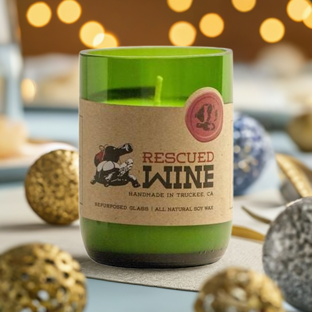 Rescued Wine repurposed wine bottle candles are handmade in Truckee, California.