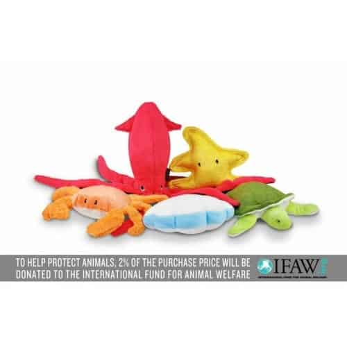 These toys are inspired by Momo’s (P.L.A.Y.’s mascot pug) hilarious antics and zoomies (definition: when a dog runs around in crazy circles yelping with joy before collapsing to the ground to take a play-induced nap) whenever we took her to our local beach, P.L.A.Y. dedicates our second collection of plush dog toys to the Earth’s precious marine life.In line with P.L.A.Y.’s continued commitment to helping animals in need, 2% of all sales proceeds from our Under the Sea collection will benefit the International Fund for Animal Welfare (IFAW).